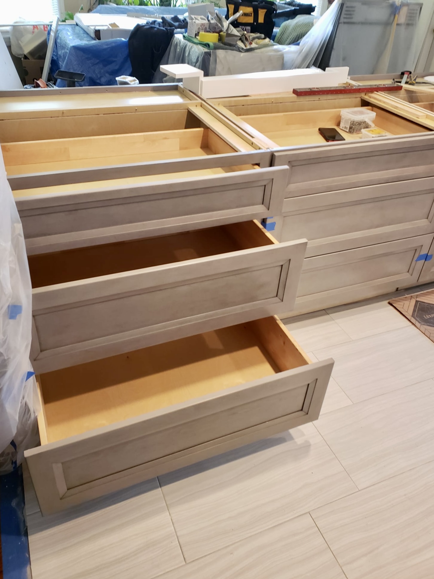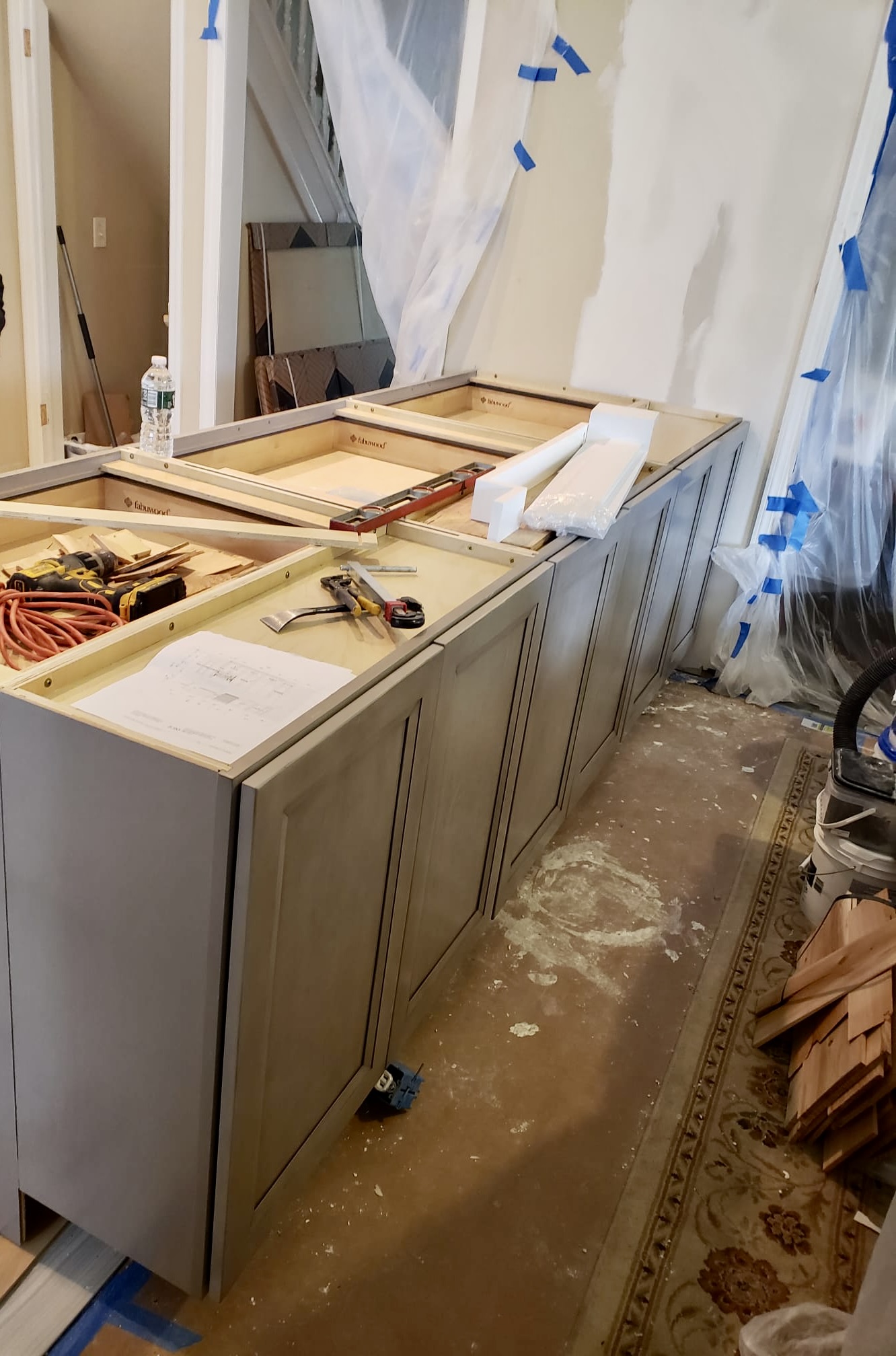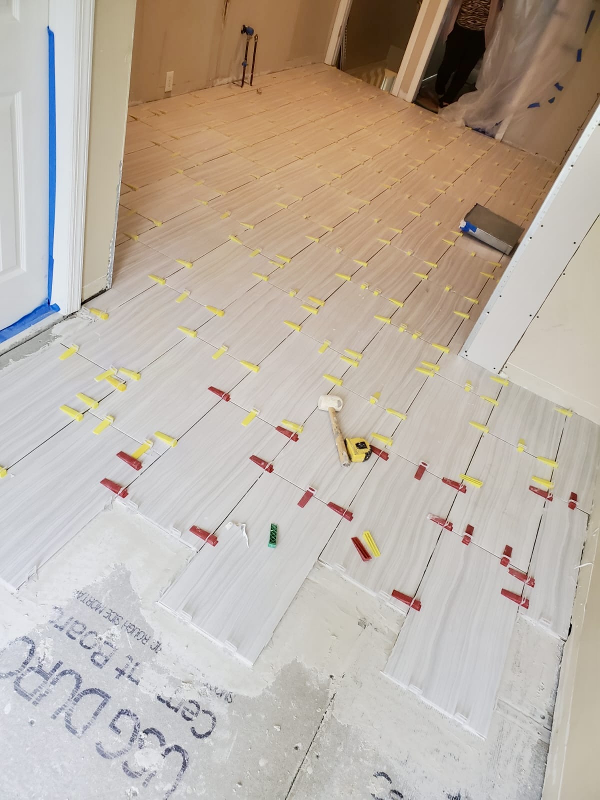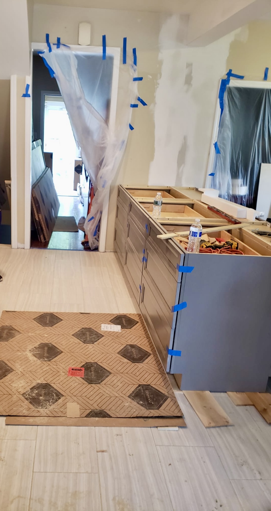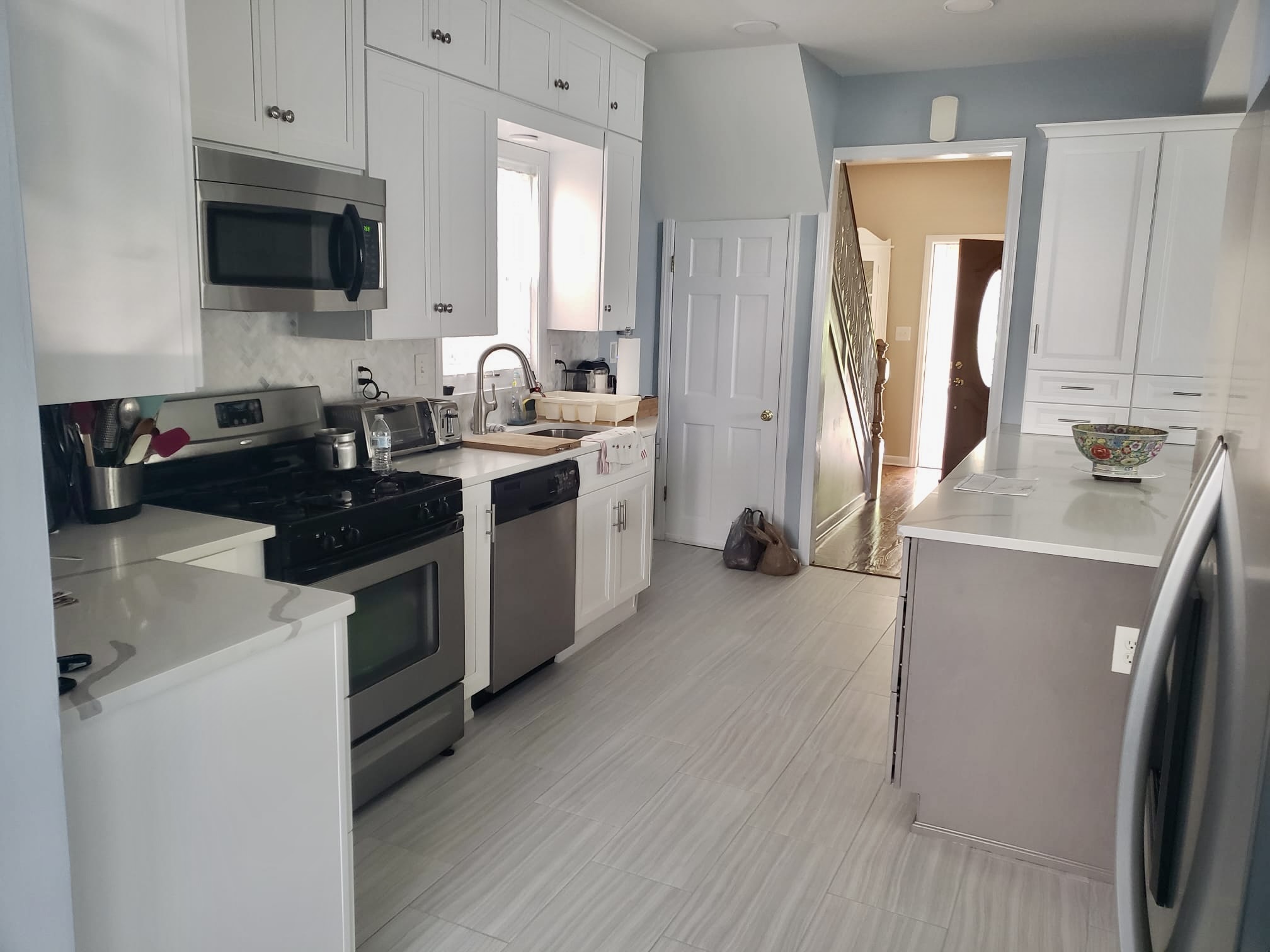 Full kitchen renovation inclusive of expanding the existing kitchen layout with full cabinet, tile, backsplash, and counter installation. Project also included a half bath remodel, with tile installation.